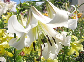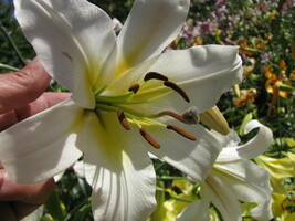 Fls white; pollen brown; stigma green. Fls 110 mm wide, strongly scented. Stems 1 m. July to Aug. (Published in M.V. Baranova, Lilii, 355 (1990).)