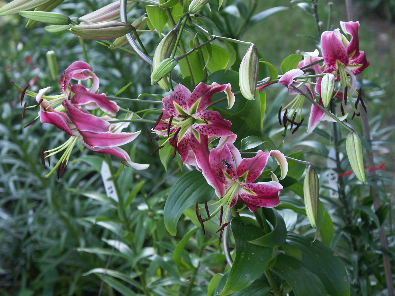 Abstammung:Roter Kandelaber x Marga Beschreibung:Inside strong purplish red (60D), with a light green throat, outside strong purplish red (60C); very small, deep red (60A) spots on the inner half of each petal; nectaries frosted; pollen moderate reddish orange (171A). Petals 105 x 35mm, not ruffled, slighty recurved. Lvs alternate, 120 x 25mm, dark green. Stems 1.25m, rather dark green, with c10 fls. Early July.Züchter:Andreas WinklerBezug:Salzborn: 1994,1996,1997,1998,1999,2000,2001,2002,2003,2007,2012,2013,2015,2016,2017; Strasser: 2010; Wistuba: 2016,2017; ELG: 2018,2019,2021;