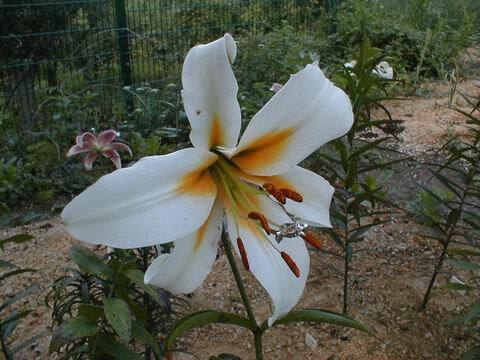 Abstammung:(Unnamed white I(a) seedling x (Connecticut King x (L. dauricum x L. leichtlinii var. maximowiczii Unicolor )F2 brushmarked selection)))Beschreibung:Pale yellow (8D, in cool weather or in low light) to pure white (always white by third day), throat with a deep magenta brushmark (20 x 10mm) extending up from nectaries, outside soft cream white to green-white; nectaries cream/green; pollen moderate red (180A). Pedicels erect; petals 60-90 x 30mm, not ruffled, tips slightly recurved. Lvs alternate, 100-150 x 20-30mm, dark green. Stems 1.5-1.8m, dark green, with 5-15 fls. Late June -early July.Bezug:Salzborn: 1994,1996;