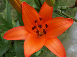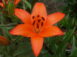 Abstammung:UnknownBeschreibung:Inside vivid yellowish pink (28A), throat 28A shading to light orange (28C) at edges, outside strong orange (30D), shading to vivid yellowish pink (30C) at edges; stigma dark red (187B); pollen strong brown (172A). Fls 195mm wide; petals 105 x 50mm, margins ruffled, slightly recurved. Lvs alternate, 110 x 15mm, mid green. Stems 1.1m, pale green, with darker markings and c12 fls.Bezug:Salzborn: 1997,1998,1999,2005; Strasser: 2010; Wistuba: 2017,2020,2021,2022;