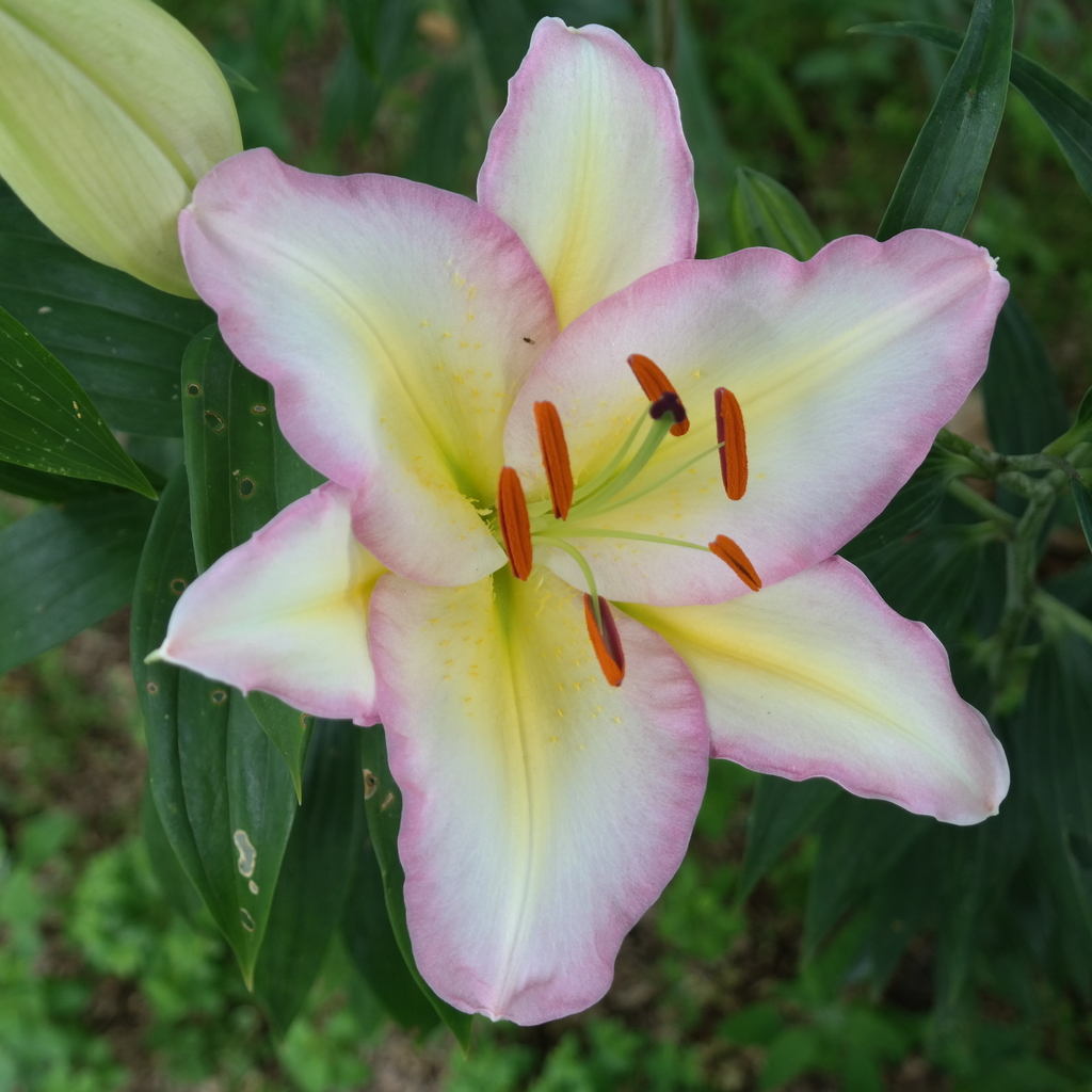 Abstammung:Parentage known but not disclosed by registrantBeschreibung:Inside of tepals mainly white (NN155B); light greenish yellow (4C) to pale yellow-green (4D) near base; margins and tips deep purplish pink (N57D); midveins brilliant greenish yellow (6A). Outside of inner tepals mainly yellowish white (155B); margins pale purple; midribs pale yellow. Spots absent; papillae few to moderately numerous, yellow; nectaries yellow-green; pollen orange-brown; stigma purple-red. Buds mainly green. Fls scented; tepals of medium length to long, and broad, margins ruffled, tips slightly recurved to recurved. Lvs of medium length to long, and of medium width to broad. Stems 1.3 m, green with few if any darker markings, with 3–6 fls. Mid-season. Published in: KAVB Registraties 2015: 8 (2016)