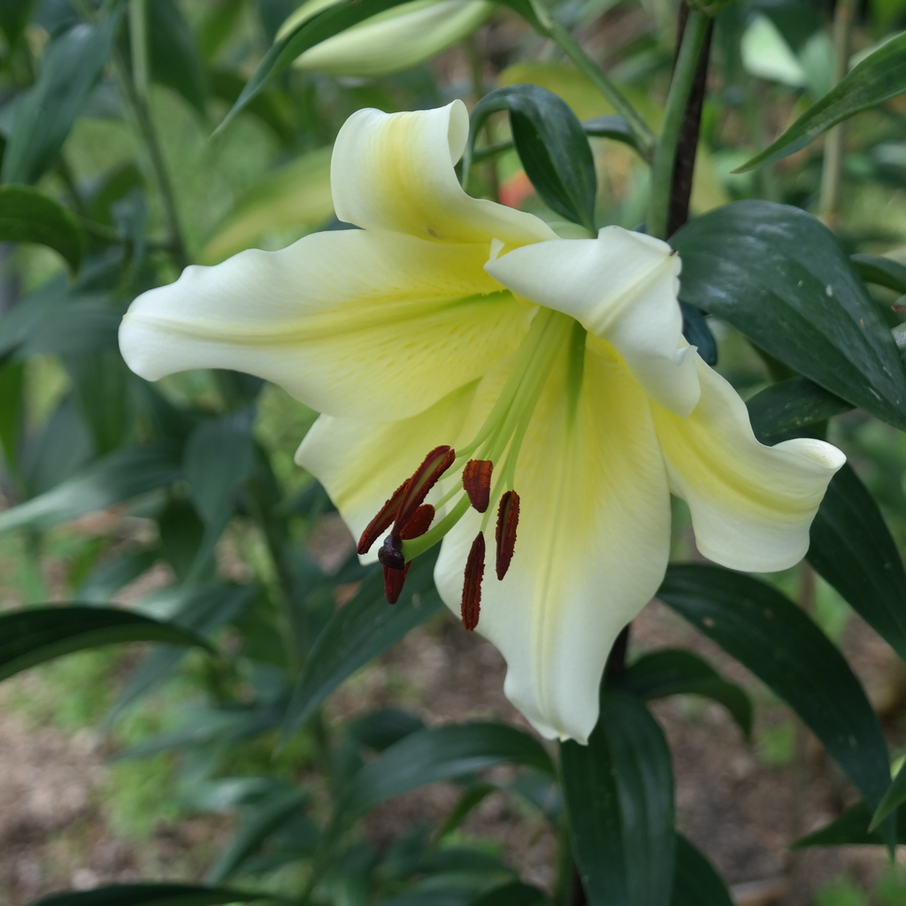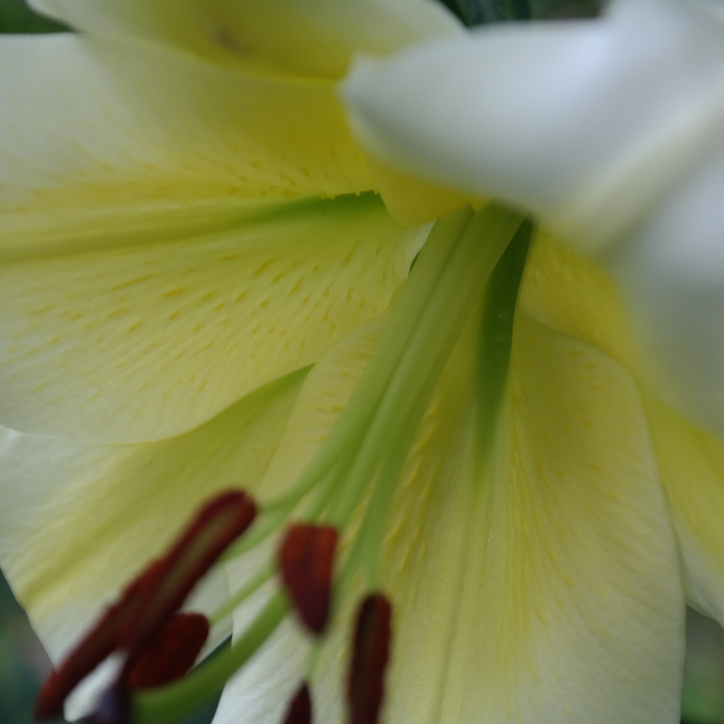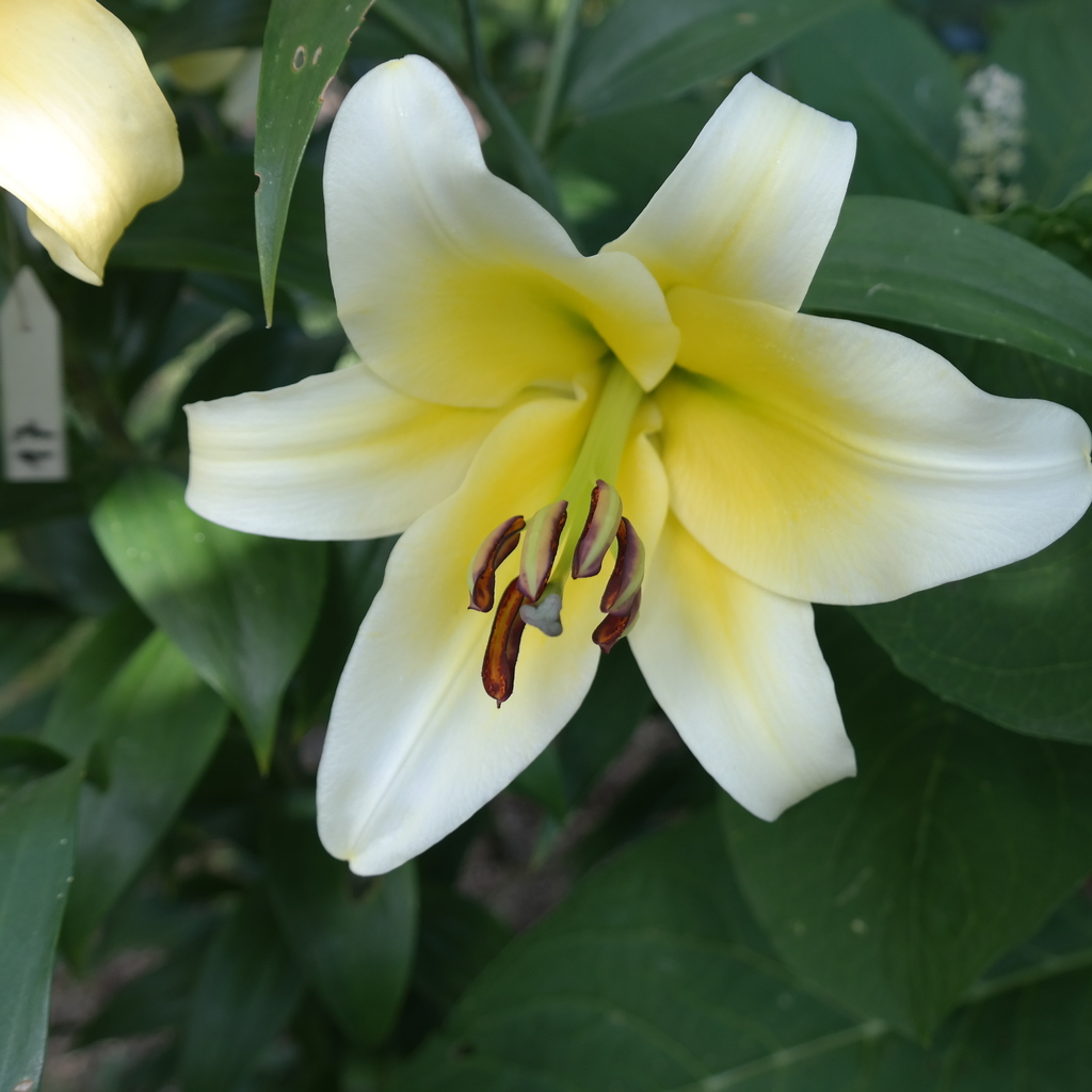 Abstammung:UnknownBeschreibung:Inside yellowish white (155D) with dark red (187B); outside yellowish white (155D); spots and papillae present; nectaries green; pollen light brown; stigma purple. Fls 170 mm wide; petals 90 x 45 mm, margins slightly ruffled, tips slightly recurved. Lvs 140 x 15 mm. Stems 0.95 m. Midseason.Bezug:Salzborn: 2004,2008; Mathys: 2011; Wistuba: 2019,2020;
