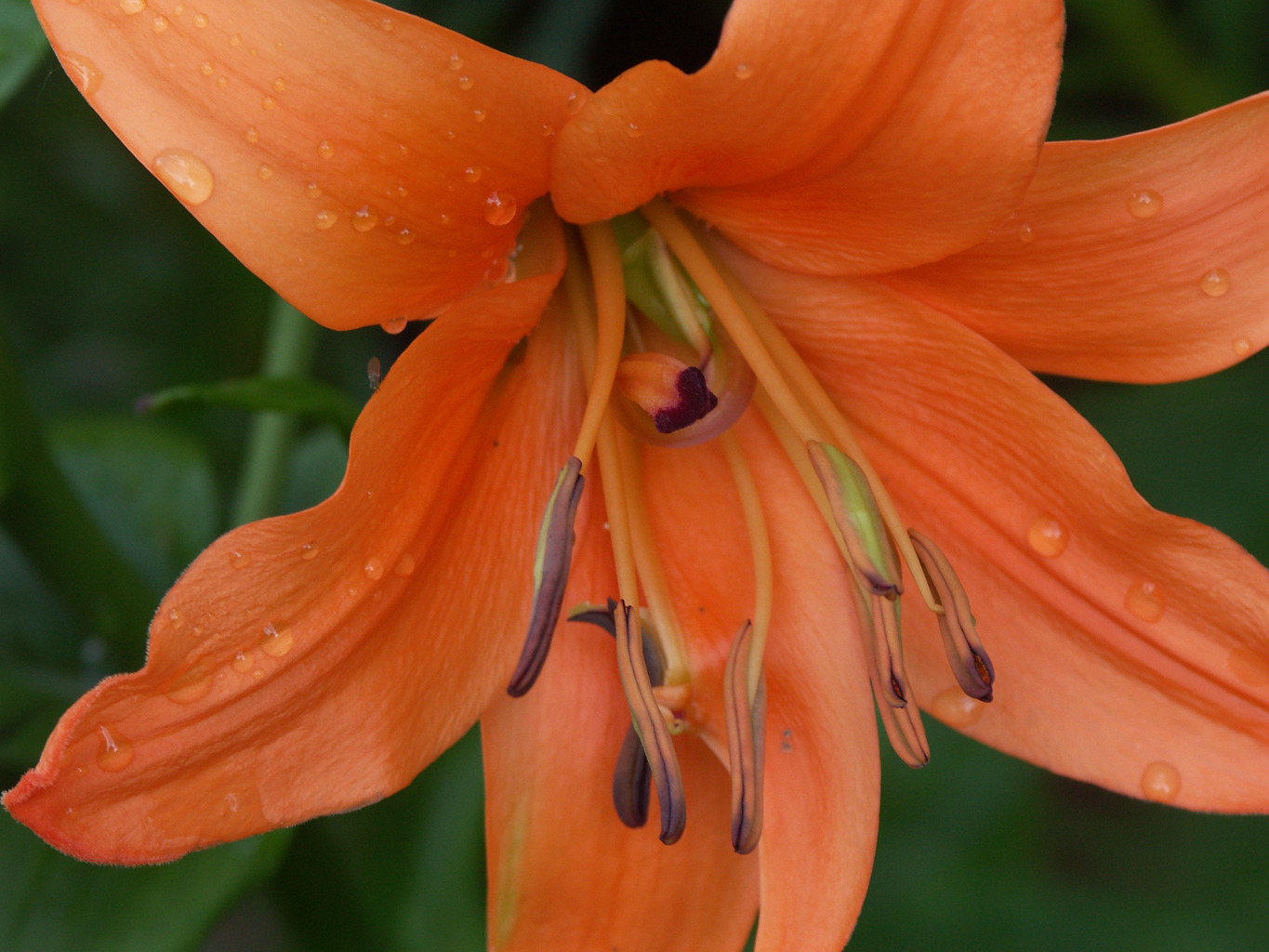 Abstammung:L. tigrinum hybrid x Connecticut King Beschreibung:Strong reddish orange (Orange-Red 32B), tips orange, throat yellow-orange, outside greenish orange; some dark brown spots in centre; pollen brown. Petals 65 x 25mm, not ruffled, slightly recurved. Lvs alternate, 70 x 15mm, dark green. Stems 1.2m, dark brown, with c15 fls. Early July. Syn. Orangenleuchte .