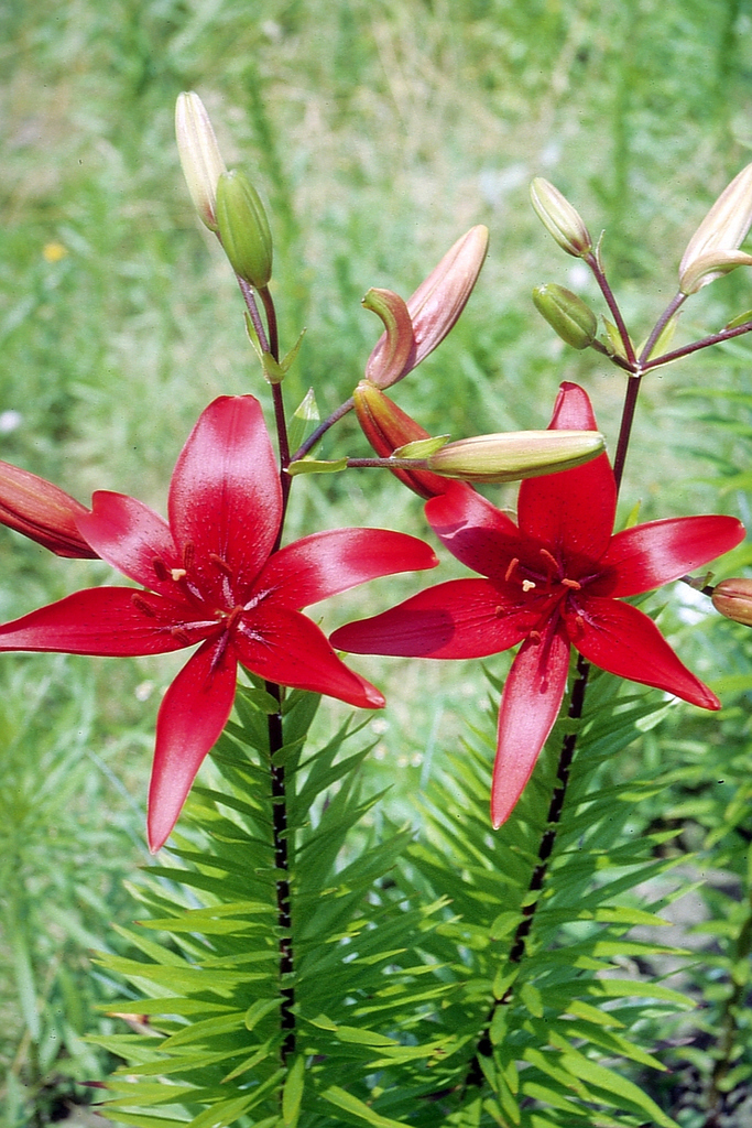 Abstammung:UnknownBeschreibung:Inside strong purplish red (60B), each petal lighter in centre, throat light green-red; outside strong purplish red (60B); pollen dark orange; stigma dark cherry-red. Fls 45 mm wide; petals 40 x 18 mm, margins smooth, tips strongly recurved. Lvs whorled, 150 x 40 mm. Stems 1.4 m, green, darker towards top, with c.25 fls; buds hairy. Late June. (Etymology: Kiara is a Latvian female name.)