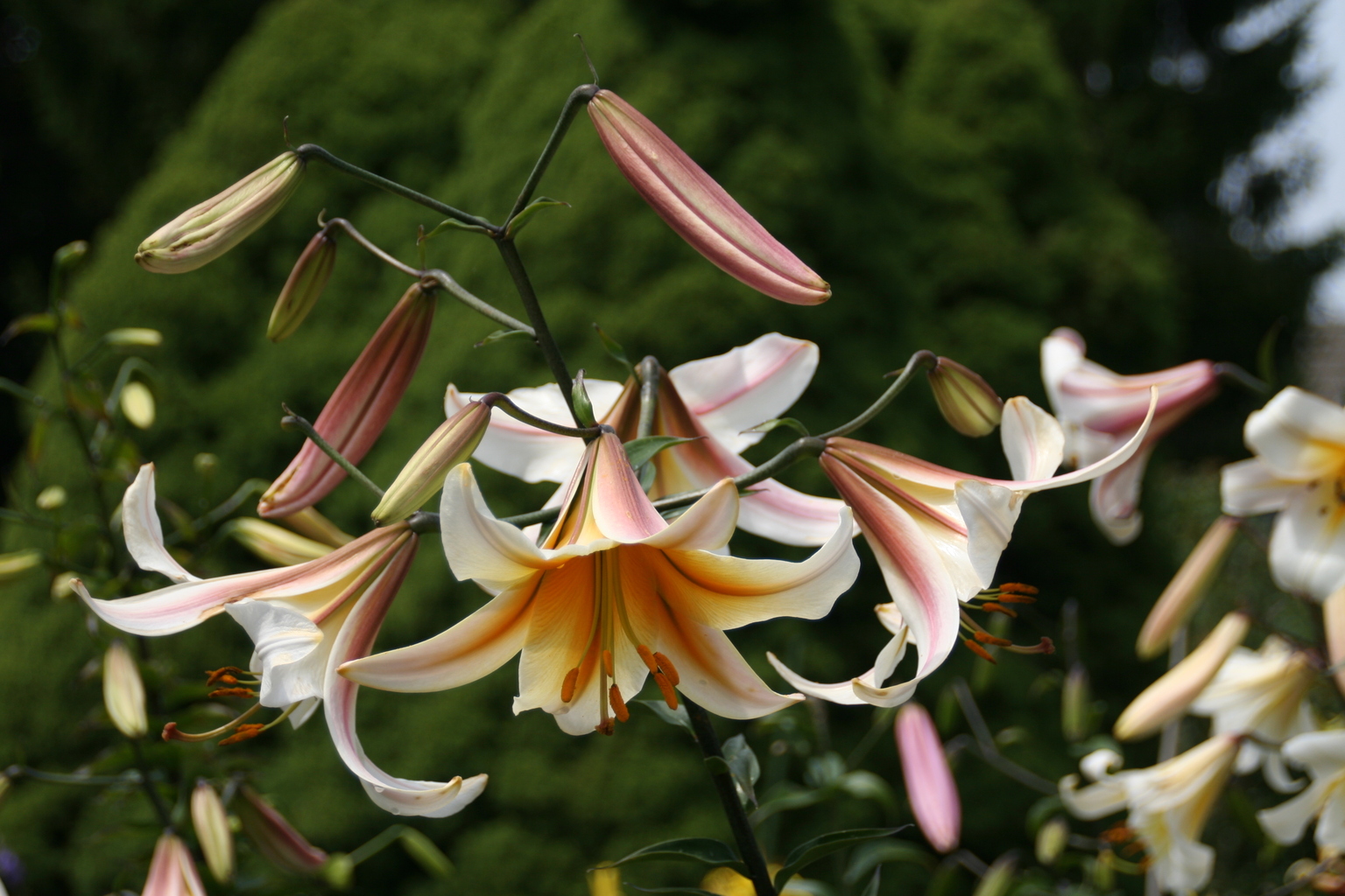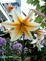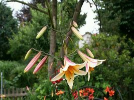 Abstammung:L. × aurelianense Hesara × Frosty PP Beschreibung:Inside of tepals with broad, strong orange-yellow (22A) patch in basal one third, feathering into pale orange-yellow (19D) towards tips; midveins prominent and double, green at base, shading to 22A, then 19D at top; throat moderate olive-green (137A). Outside of tepals pale orange-yellow (19D), flushed moderate purplish pink (186D) beside midribs and increasingly towards base; midribs reddish purple. Spots and papillae absent; nectaries in moderate olive-green (137A) star; pollen moderate orange-yellow (165C); stigma moderate reddish brown (177A). Fls 160mm wide, (strongly) scented; tepals 105 × 40mm (inner), 105 × 25mm (outer), margins smooth, tips straight or (very) slightly recurved; secondary buds present. Lvs 110 × 25mm, scattered, dark yellowish green (136B). Stems 1.7m, moderate yellowish green (138A), with up to 15 fls in racemose infl. July. The Lippe is a river in Datteln, Germany; "stern" means "star" in German.Züchter:Dr. Jörg M. Giffei