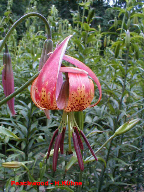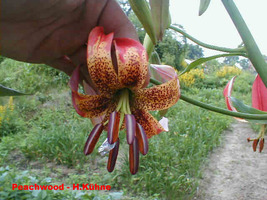 Peach coloured, spotted; petals recurved. Lvs whorled. Stems 2.4m.