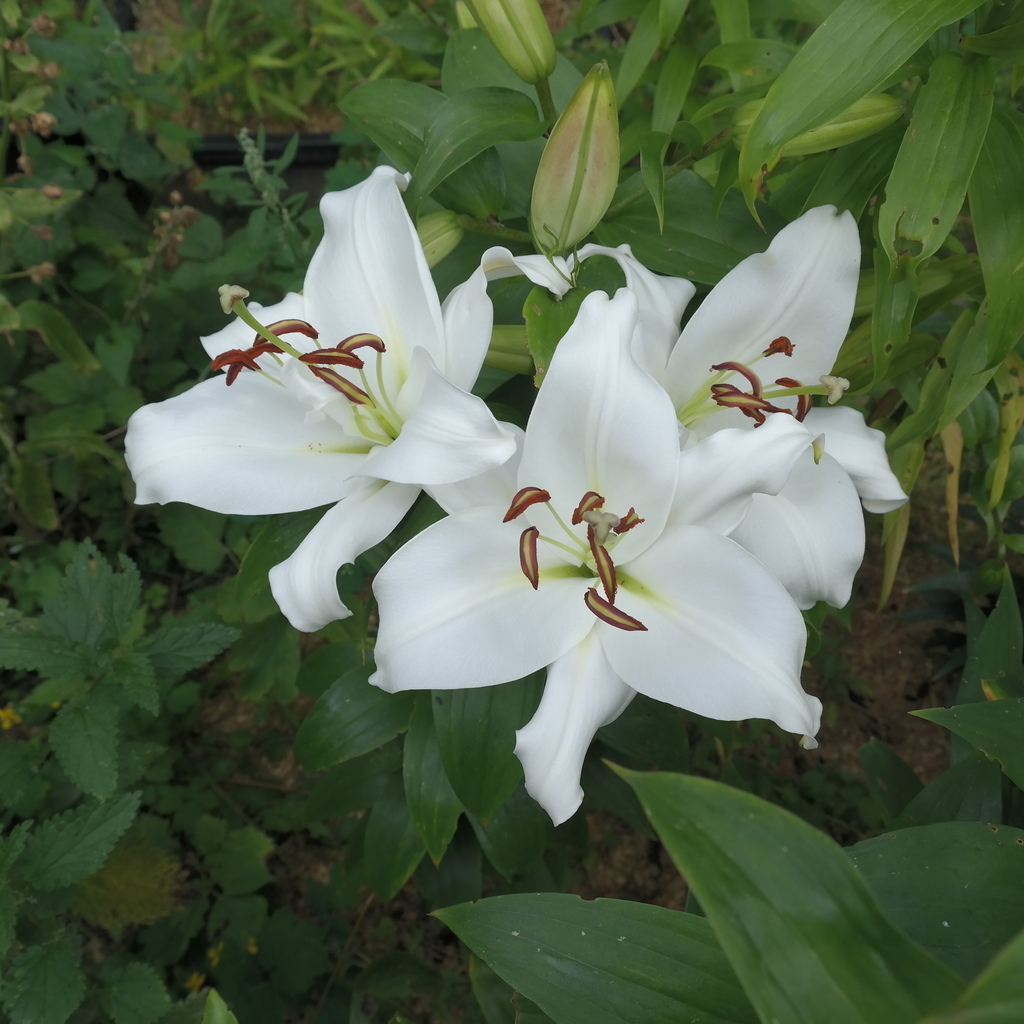 Abstammung:Parentage known but not disclosed by registrantBeschreibung:Inside of tepals, and outside of inner tepals predominantly, white (NN155C), inside shading to pale yellow beside midveins at base; midribs of inner tepals tinged mid-green. Spots absent; papillae present; nectaries yellow-green; anthers orange-brown; pollen pale buff; stigma pale grey-green, speckled purple. Tepals long, and of narrow to medium width (outer) to broad (inner), margins slightly ruffled (to ruffled, on outer tepals), tips recurved. Lvs of medium length to long, and broad to very broad. Stems 1.55 m, green, with 5–7 fls. Early to mid-season. Published in Mak Breeding’s Lilyscoop (2012):16, with photo External images: Mak Breeding Lily Assortment flyer (2011) Care should be taken not to confuse this with the unregistered Asiatic lily ‘Zambezi’ apparently in circulation in eastern Europe. Normally registration of a homophone such as ‘Zambesi’ would be disallowed, but in this case registration has been accepted because publication of the epithet in 2011 pre-dated establishment of ‘Zambezi’ (apparently not until 2012) and because ‘Zambesi’ had already been granted Dutch PBR (so the epithet cannot be rejected, under ICNCP, 2009: Art. 31.2).Bezug:Salzborn: 2012,2013,2015; Wistuba: 2014,2015,2016,2017,2018,2019,2020,2021;