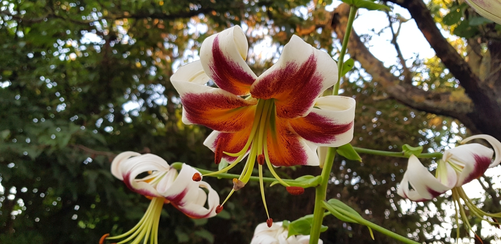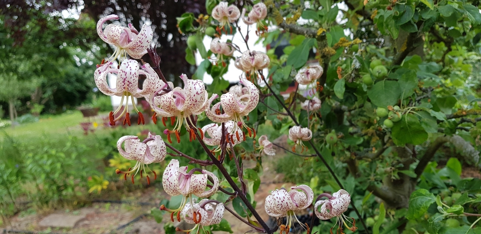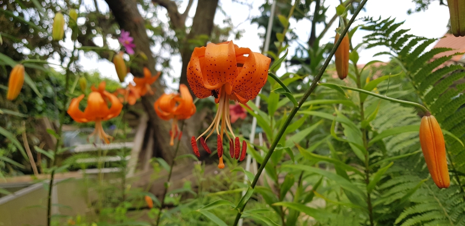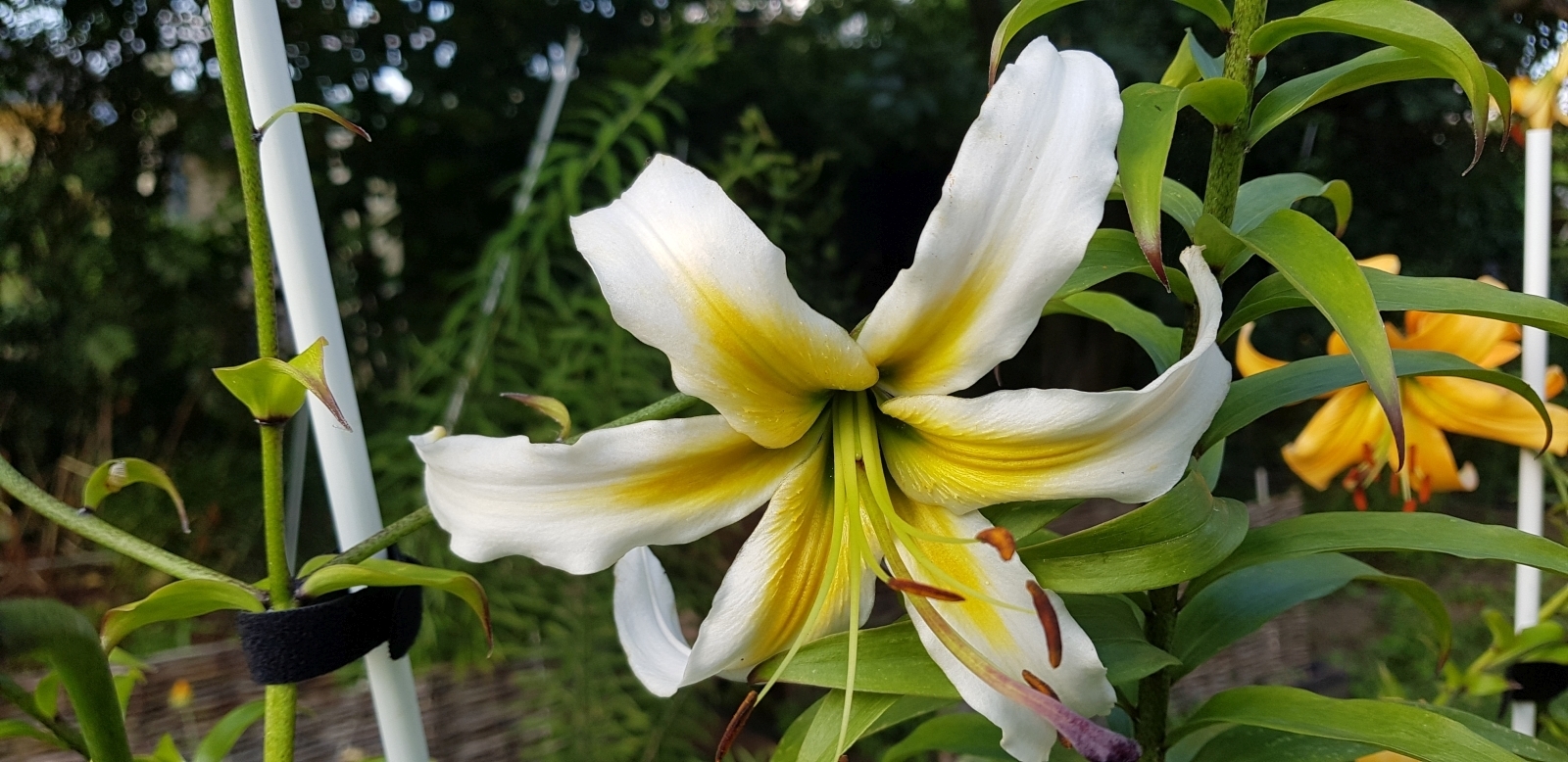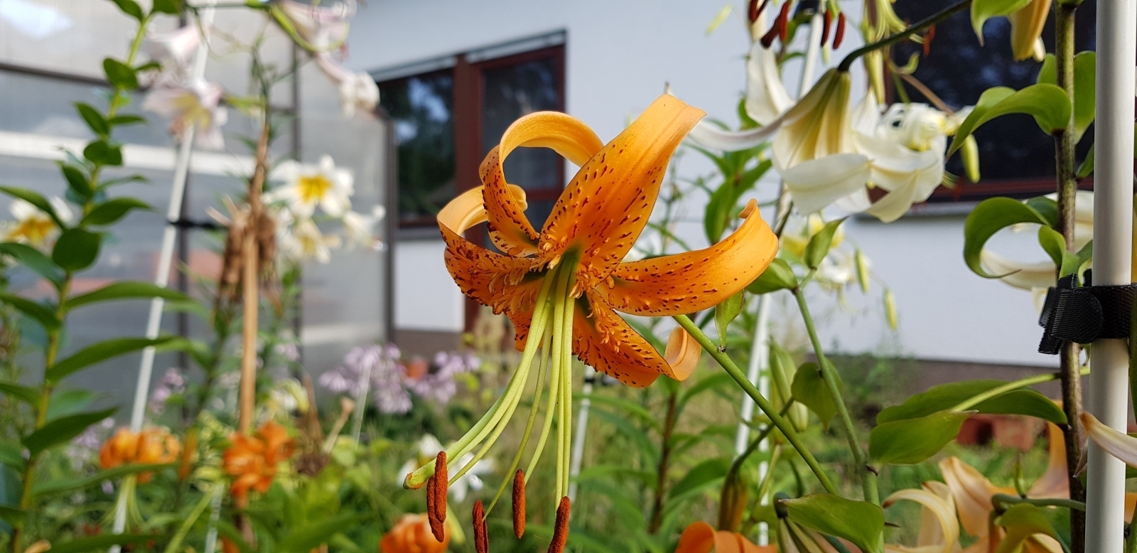 604 'AM 08-3525-21', orange, Henryi-Typ, starker Stängel x 'HK 095202', weiße Tr., Kü