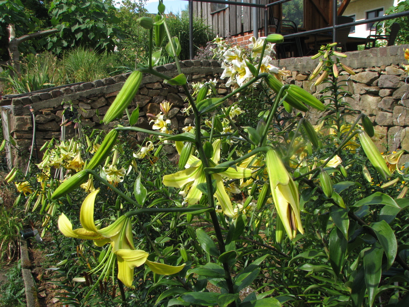 Beschreibung:weiss, schwarze Nektarien, bis 33 Blüten, 180 cm, Mitte JuliZüchter:Norgart Martschinke