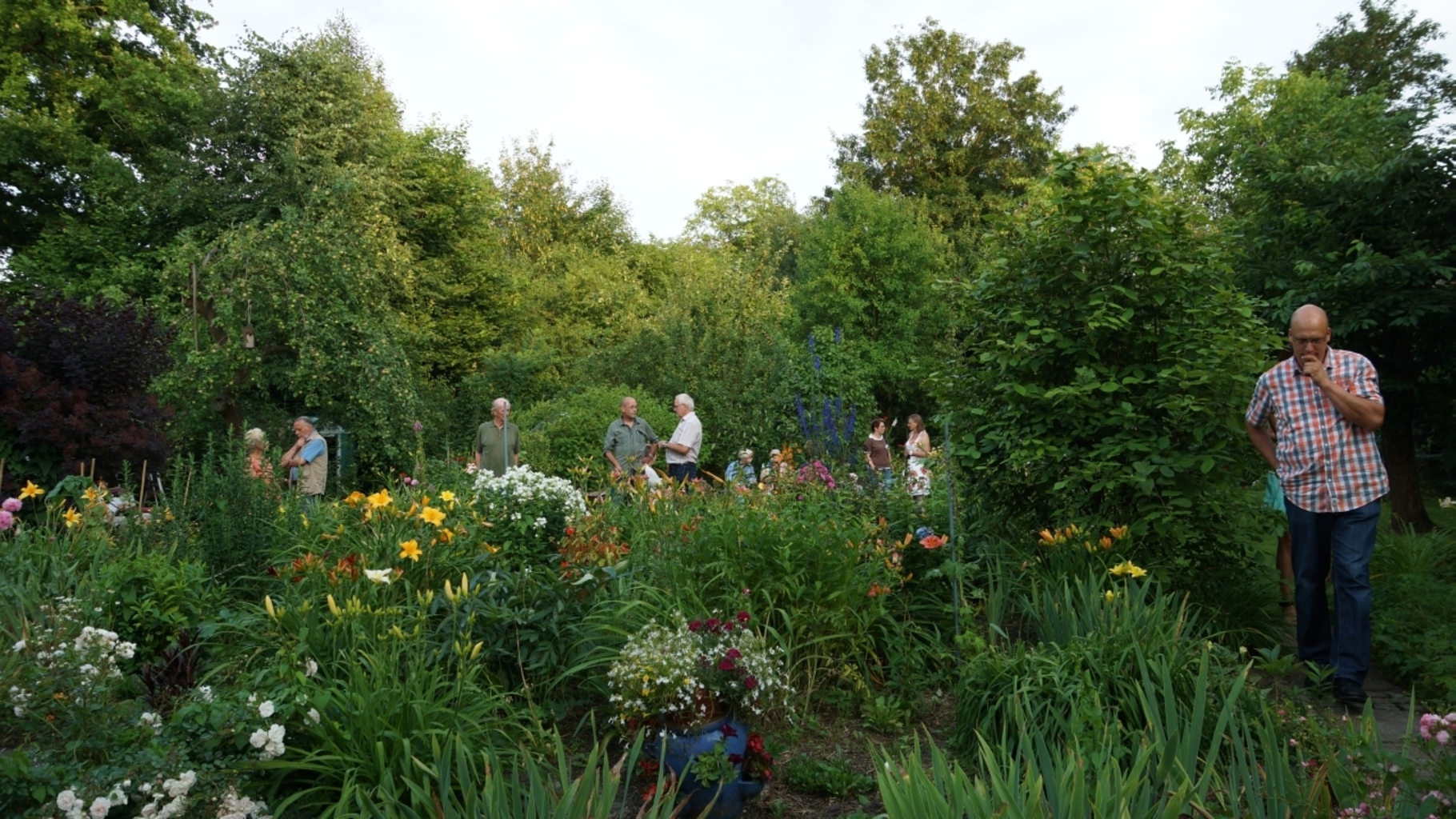 Treffen im Garten von Dr. Hans Mai (Ausstellungsleiter) am Freitagabend
