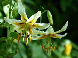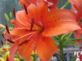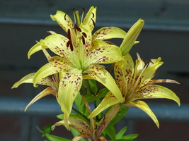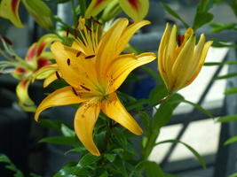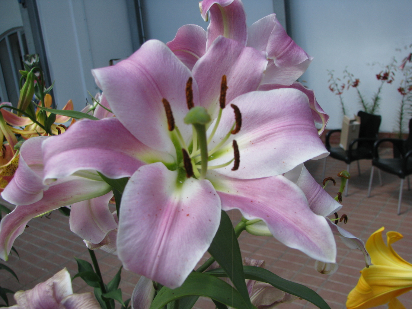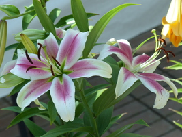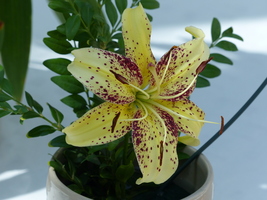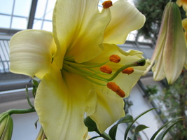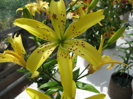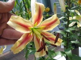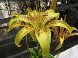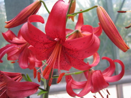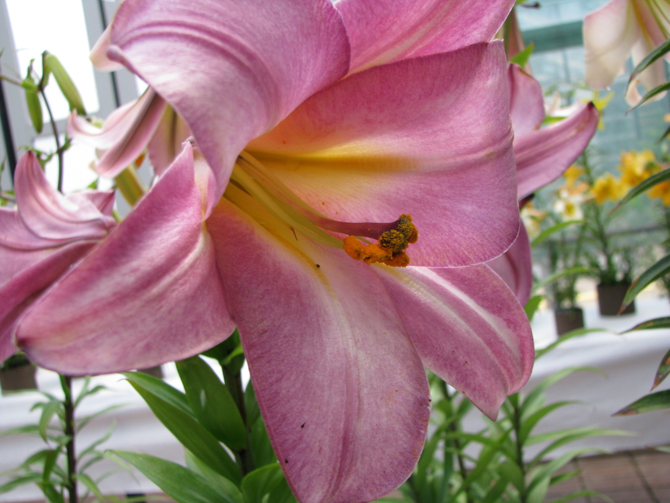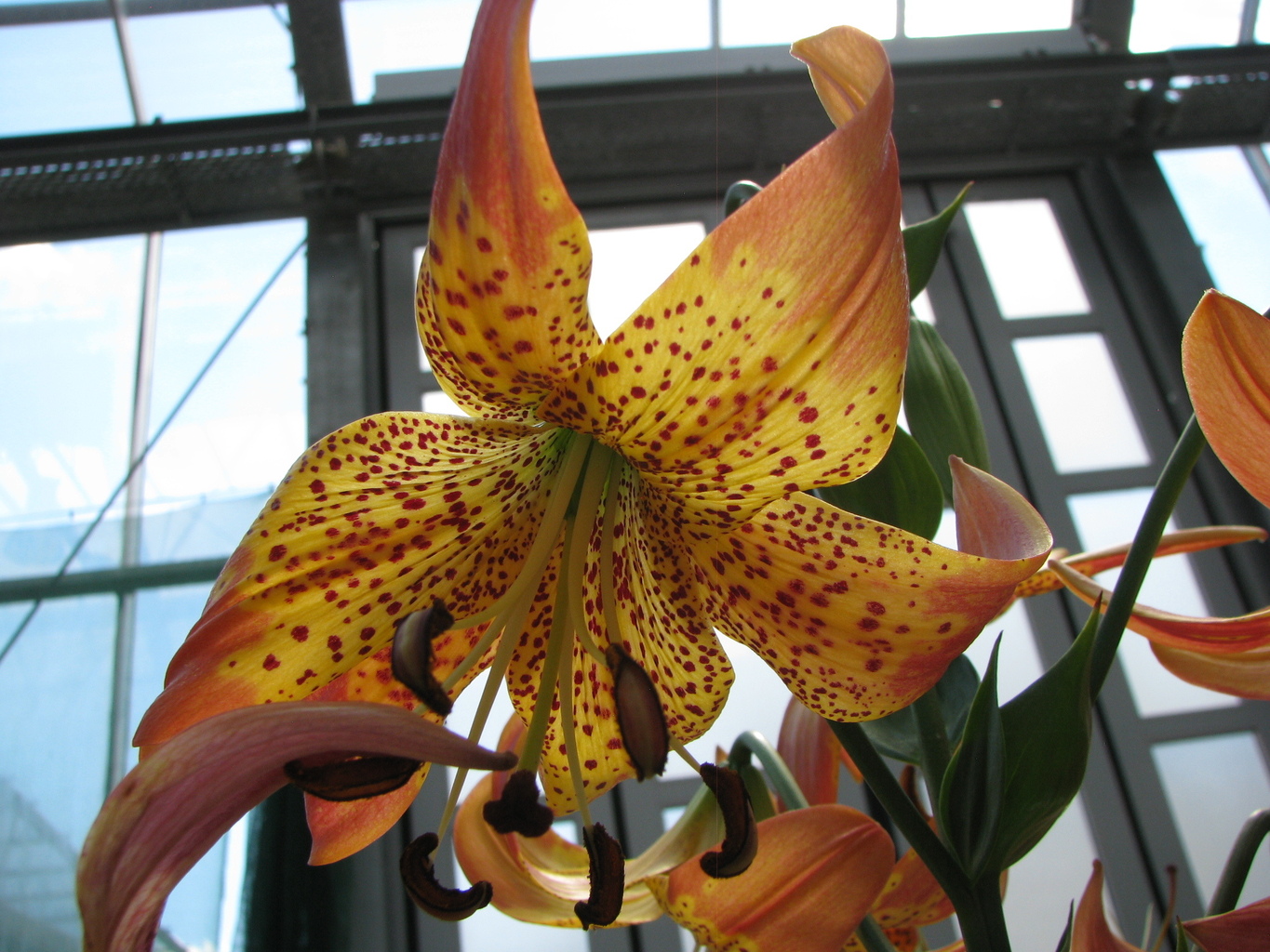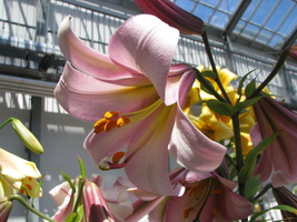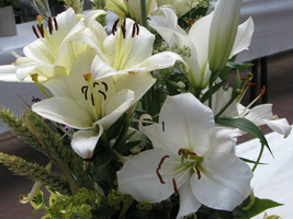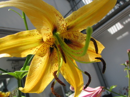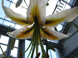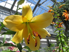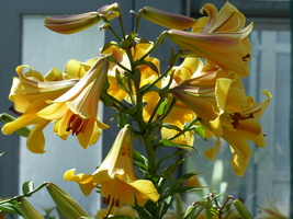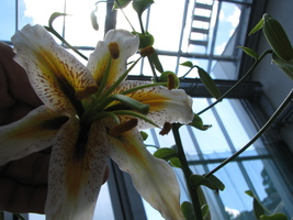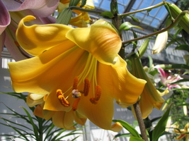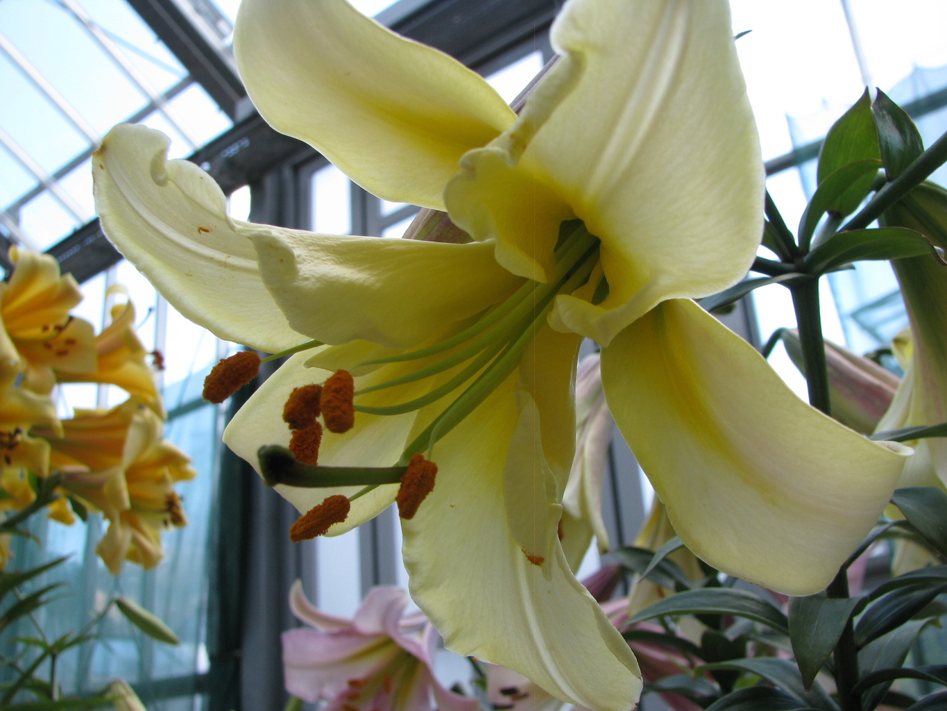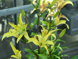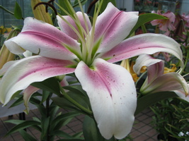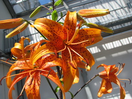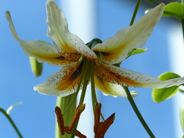 Es ist zu hoffen, dass auf zukünftigen Ausstellungen wieder mehr Exponate gezeigt werden. Um die Ausfälle gegenüber früheren Ausstellungen optisch zu kompensieren, hatten die Ausstellungsleiter auch zugekaufte Schnittlilien als Dekoration aufgestellt. Ich fand es interessant, dass diese Treibhaus-Lilien trotz ihres perfekten Zustands (einwandfreies Laub ohne Fraß-, Transport- und Trockenheitsschäden, fette gleichmäßige Blütenstände usw.) anscheinend dennoch weniger Interesse bei den meisten Ausstellungsbesuchern fanden als die individuelleren Lilien aus unseren Gärten.